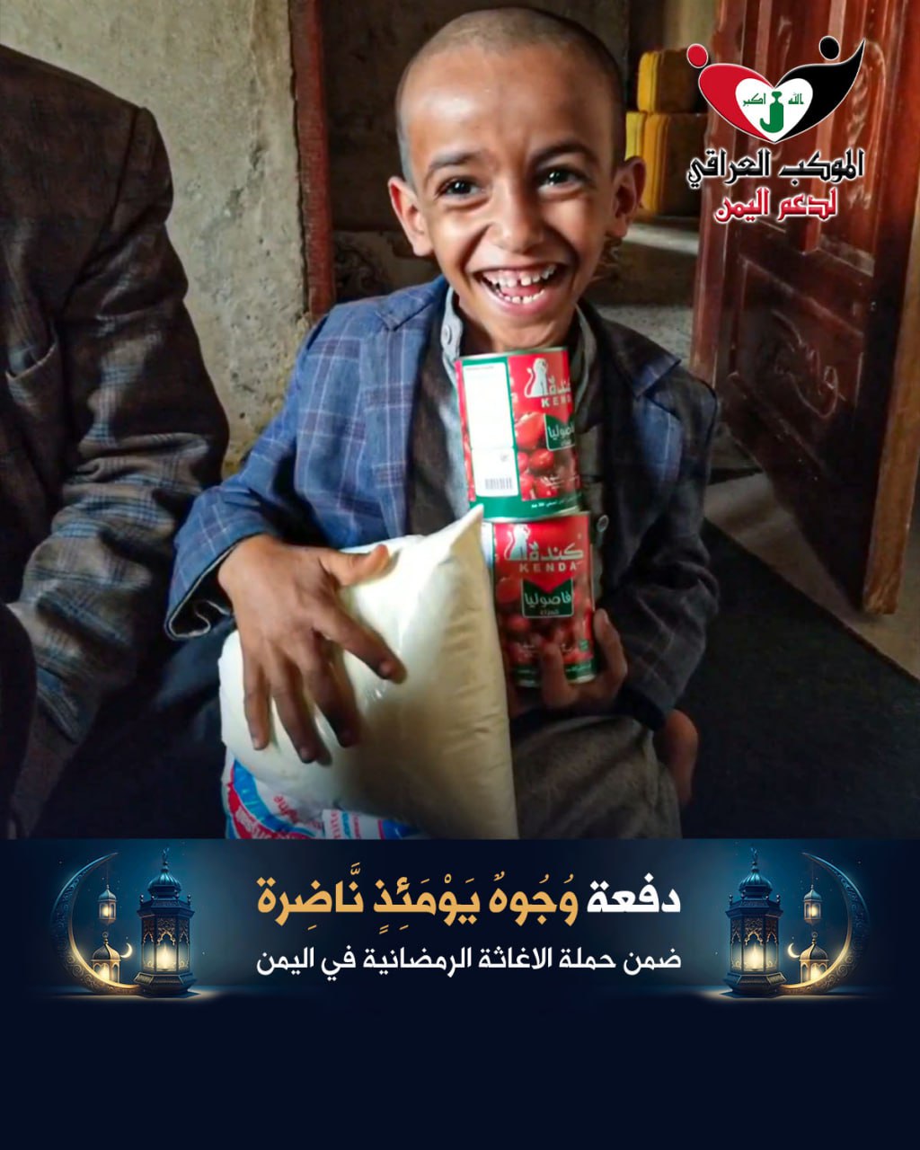الموكب العراقي ينفذ دفعة (وُجُوهٌ يَوْمَئِذٍ نَاضِرة) من كربلاء الى يمن الصمود !