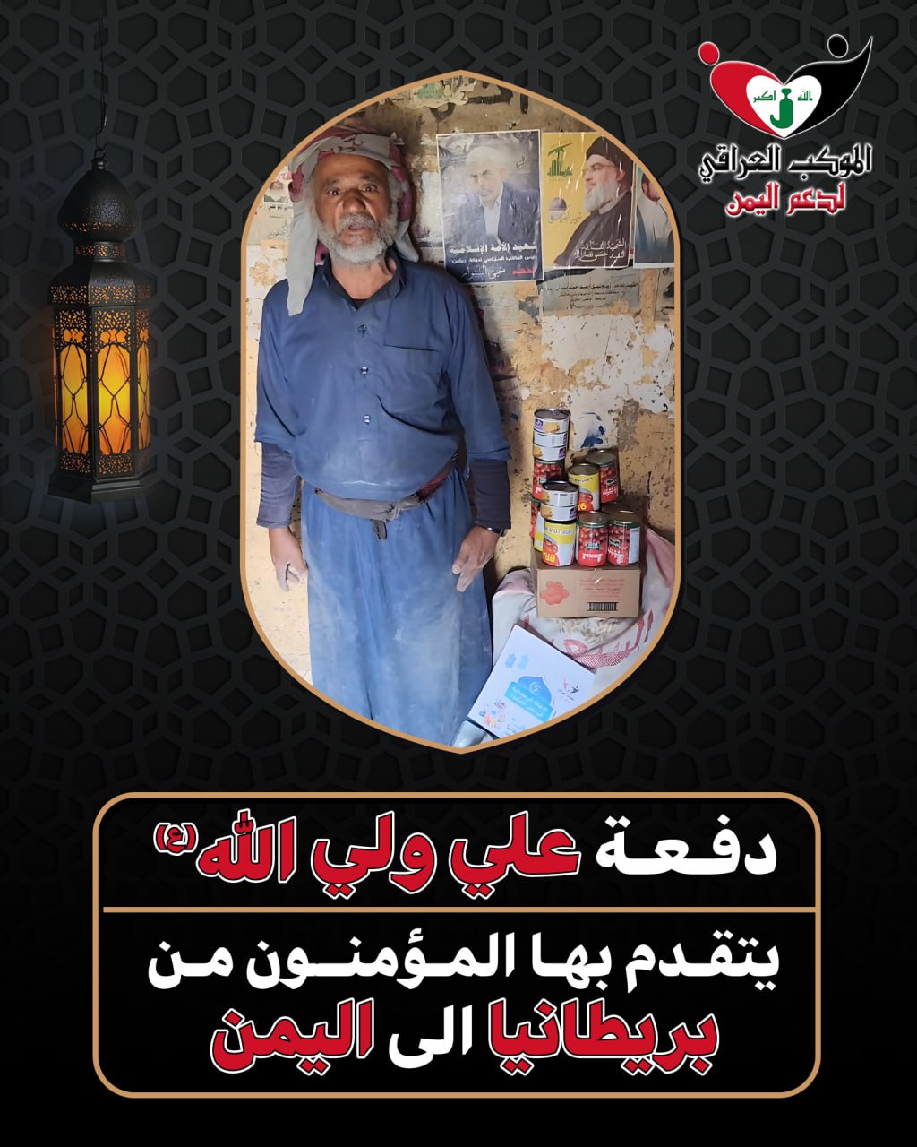 في ذكرى استشهاد الامام علي (ع) الموكب العراقي يتقدم بدفعة علي ولي الله ع ضمن حملة الإغاثة الرمضانية