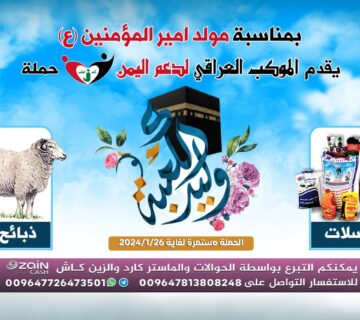 الحجة بن الحسن (عج) واليمن .. المستقبل وأهدى الرايات في ذكرى ولادته الشريفة عج يتشرف الموكب العراقي لدعم اليمن بتقديم ... قراءة المزيد