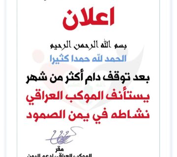 إعلان … الموكب العراق يستأنف العمل في يمن الصمود
