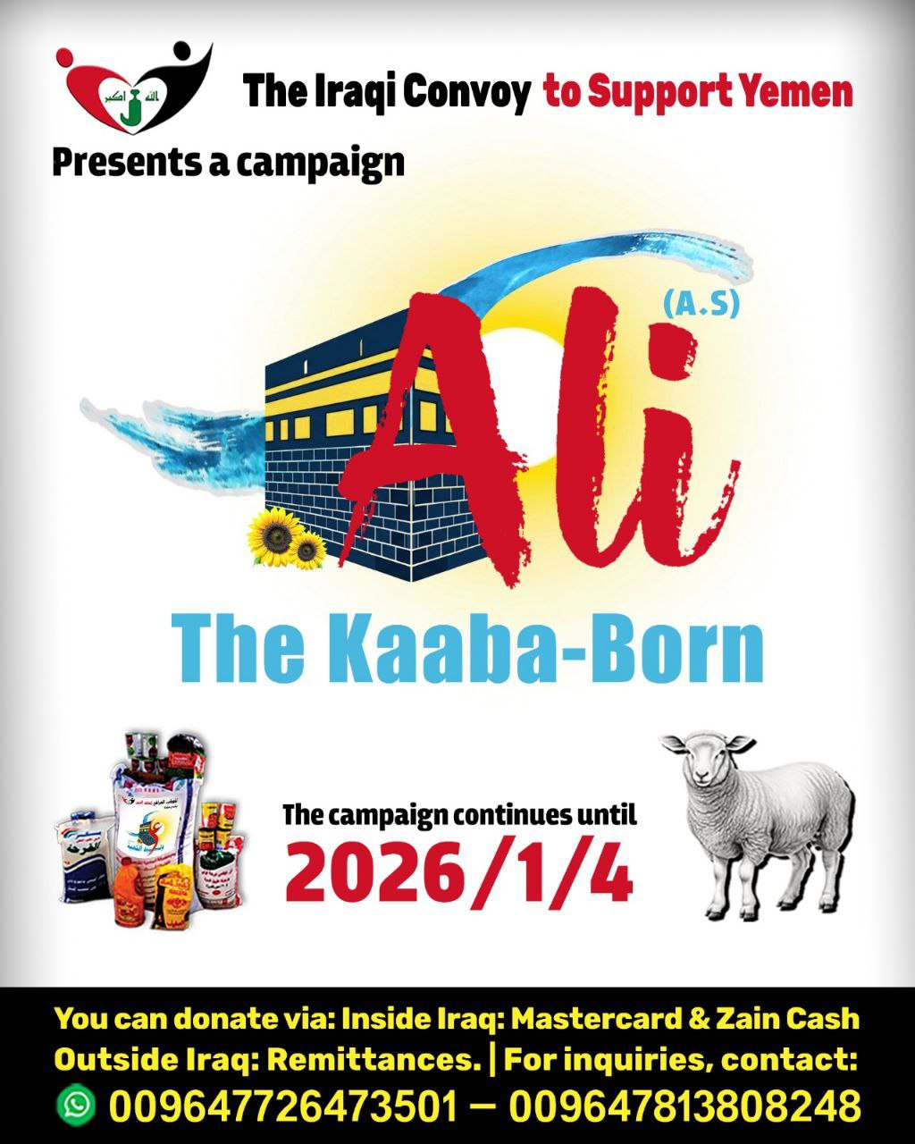 • Now launching a campaign: Ali, born in the Kaaba (peace be upon him) For distributing relief in steadfast Yemen On the anniversary of his blessed birth